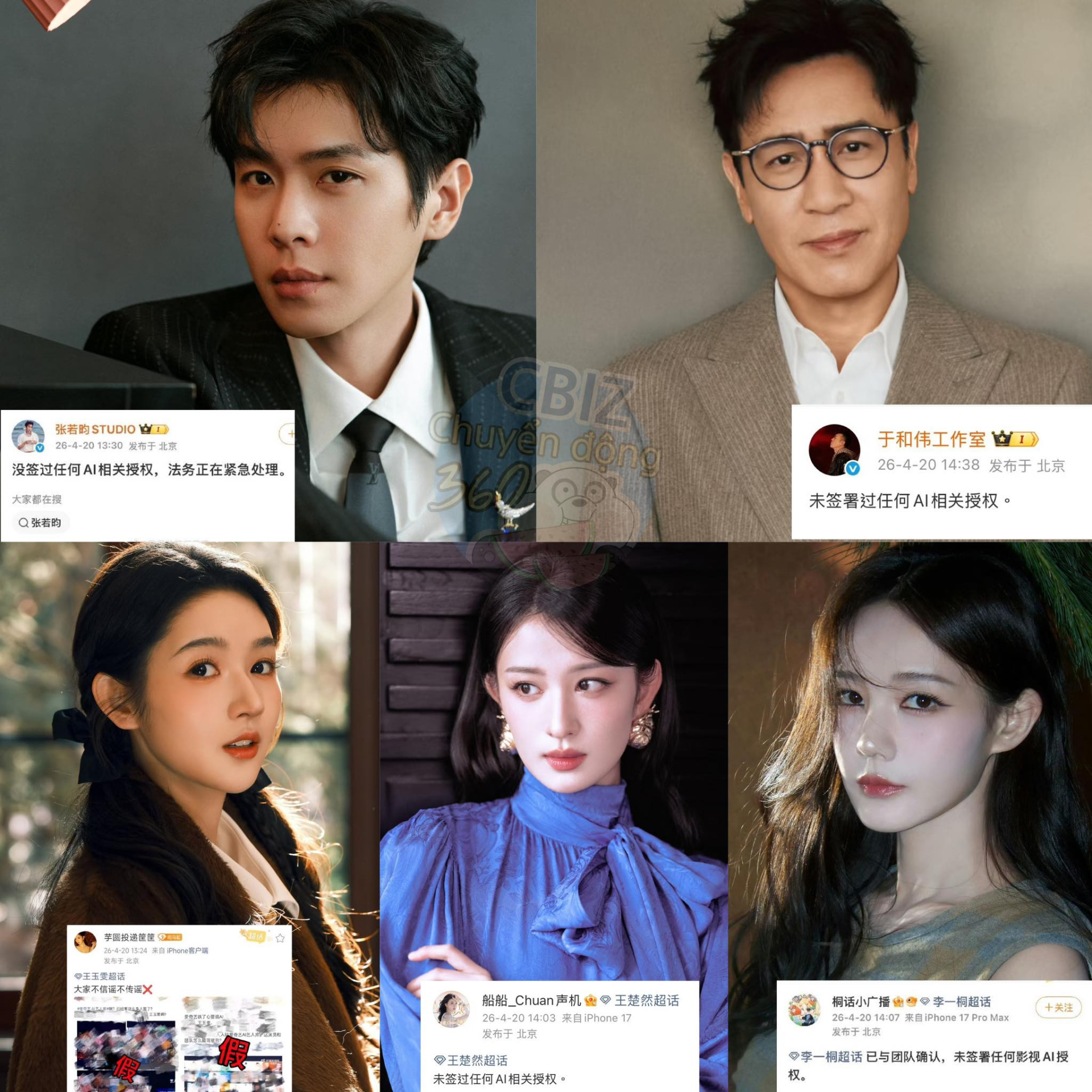 Phía Trương Nhược Quân, Vu Hòa Vỹ, Vương Sở Nhiên, Lý Nhất Đồng, Vương Ngọc Văn đồng loạt lên tiếng phủ nhận việc "bán mặt" cho AI