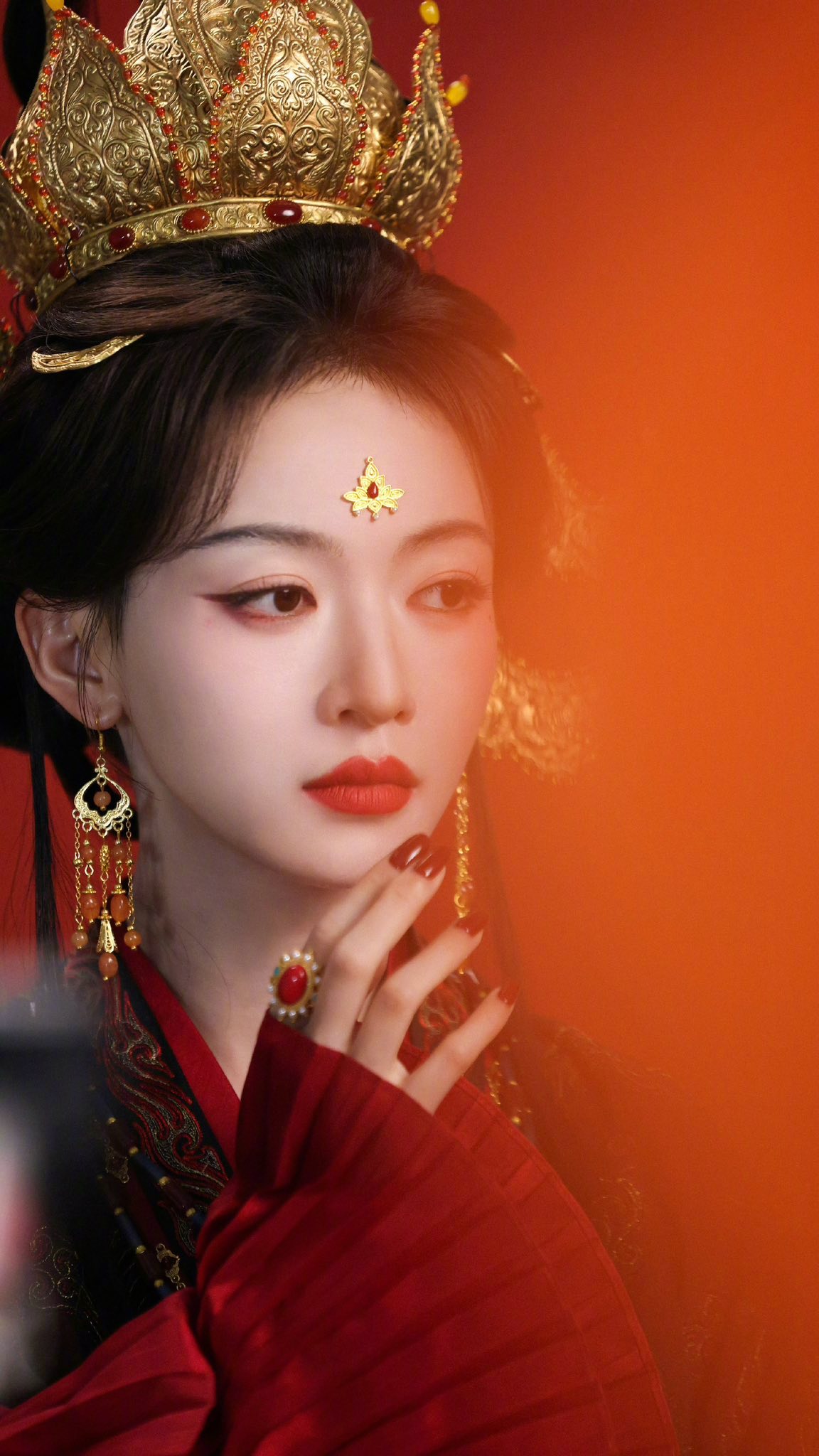 Hoàng hậu đẹp nhất màn ảnh Hoa ngữ lúc này gọi tên Ngô Cẩn Ngôn có lẽ cũng không hề quá lời. Những hình ảnh hậu trường vừa rò rỉ từ phim trường Phượng Bất Tê đang khiến mạng xã hội xôn xao, bởi dung mạo của cô trong vai Tần Trường Ca thực sự mang cảm giác “dệt từ sương khói” mong manh mà vẫn toát lên khí chất cao ngạo khó chạm tới. Chỉ một ánh nhìn, một cái nghiêng đầu nhẹ cũng đủ gợi nên vẻ uy quyền của một người đứng trên vạn người.