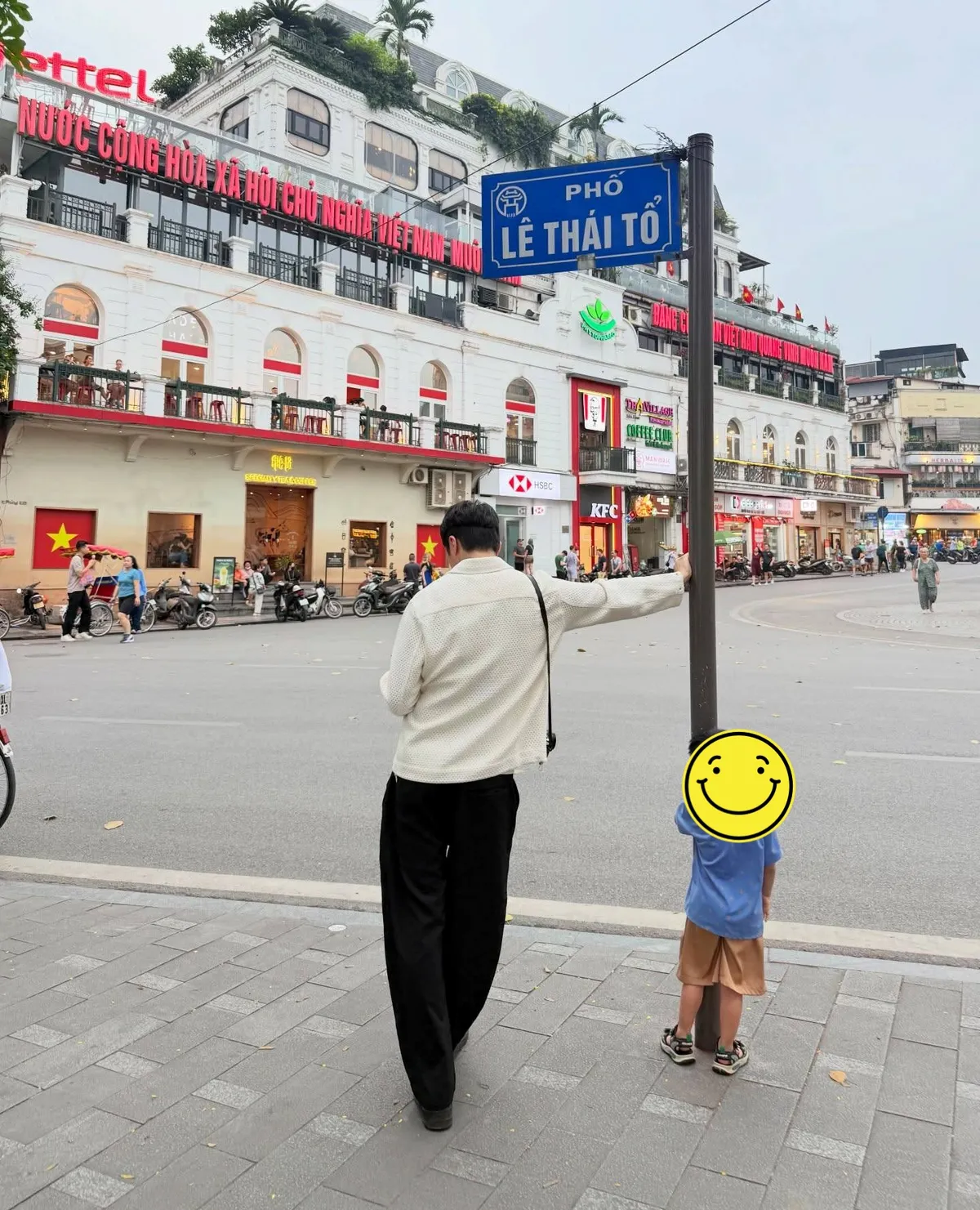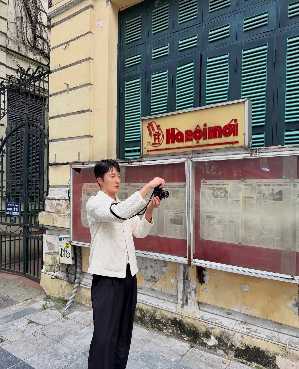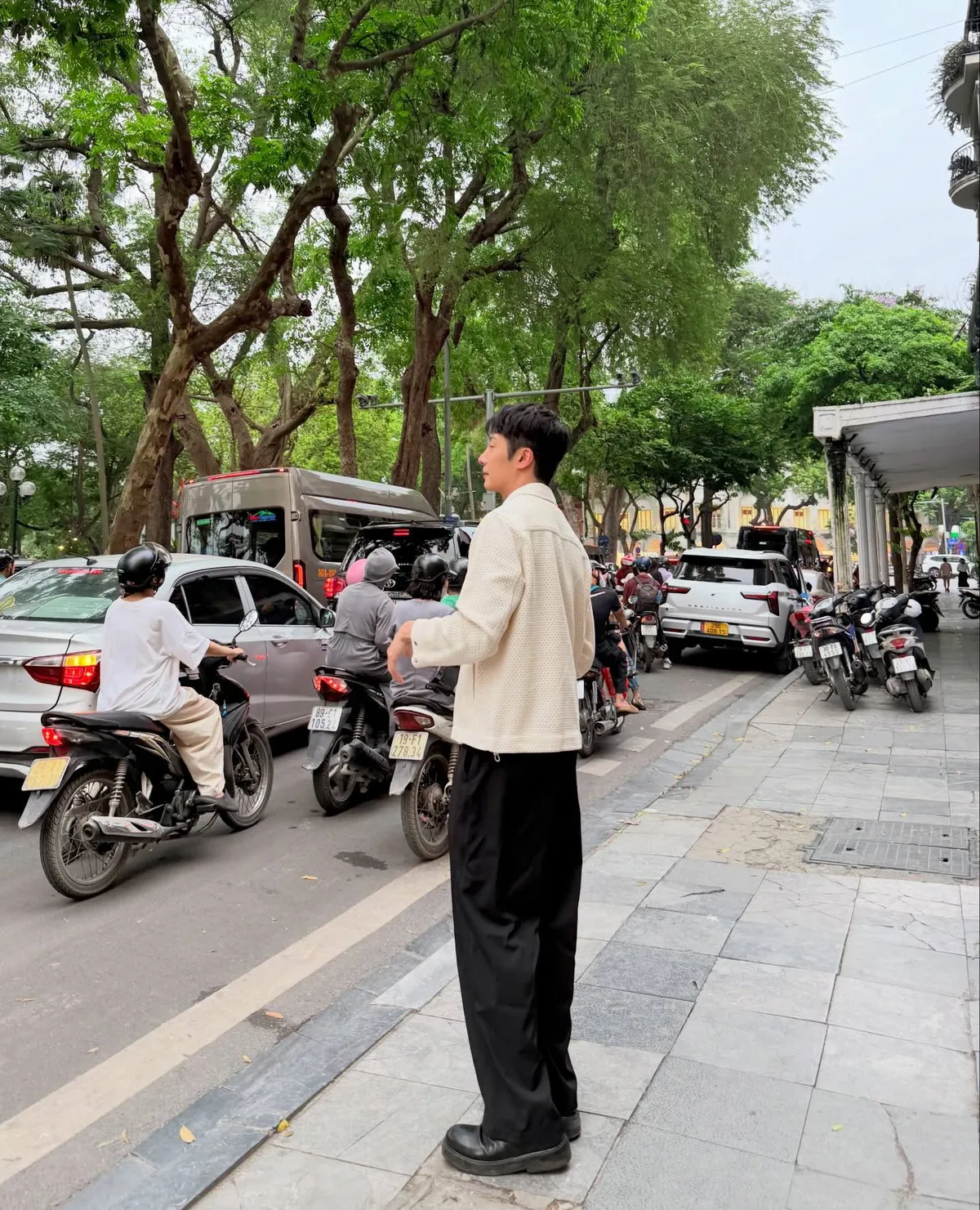 Tài tử xứ Hàn còn quanh Hồ Gươm. Nhờ vóc dáng cao lớn và vẻ mặt điển trai, anh Jung Il Woo nổi bần bật giữa phố mà chẳng cần lên đồ cầu kỳ. Ảnh: Instgram.