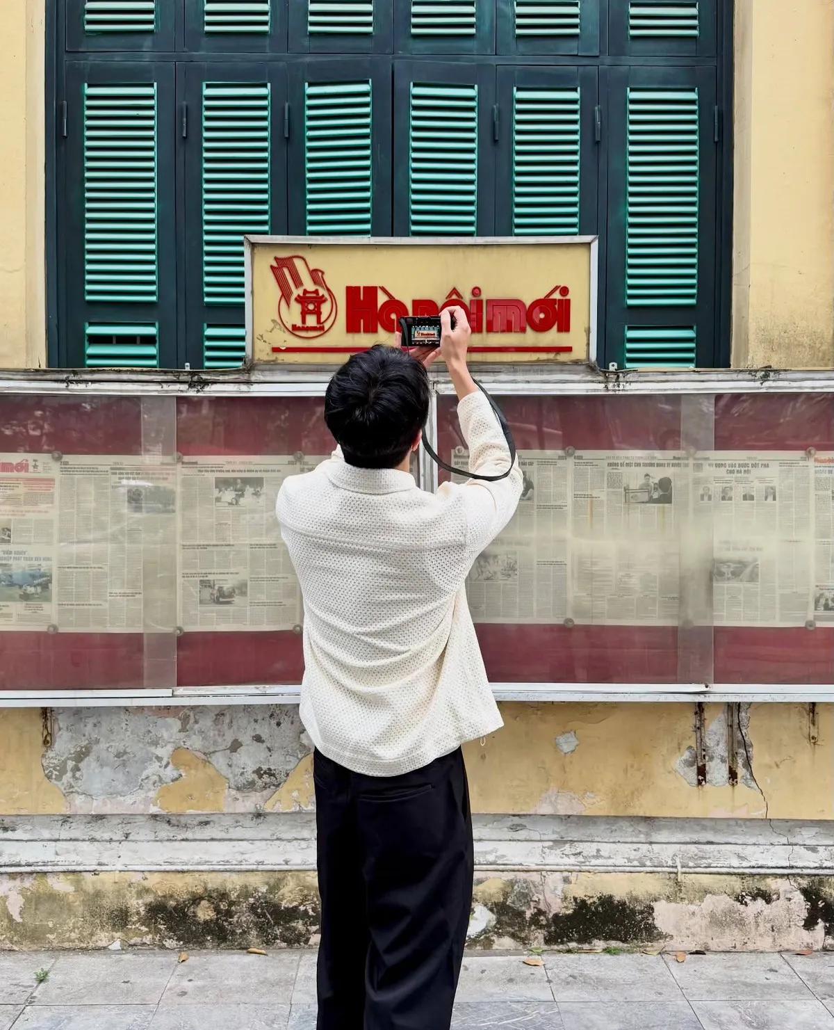 Anh "check-in" tại tòa soạn báo Hà Nội Mới - địa điểm chụp ảnh siêu hot hit của giới trẻ và du khách. Ảnh: Instagram.