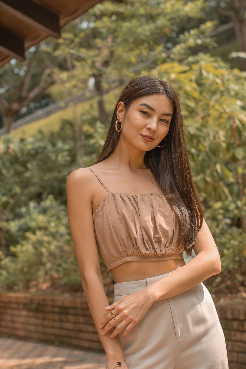 Nâu cũng nằm trong nhóm màu phù hợp với người da ngăm. Nó tạo nên vẻ ngoài cổ điển và thanh lịch. Bạn có thể kết hợp cùng xanh rêu, gợi liên tưởng đến thiên nhiên, mang lại cảm giác thư thái, dễ chịu. Ngoài ra, nếu thích sự nữ tính, hồng phấn, hồng đất là tông màu đẹp khi phối cùng nâu.
