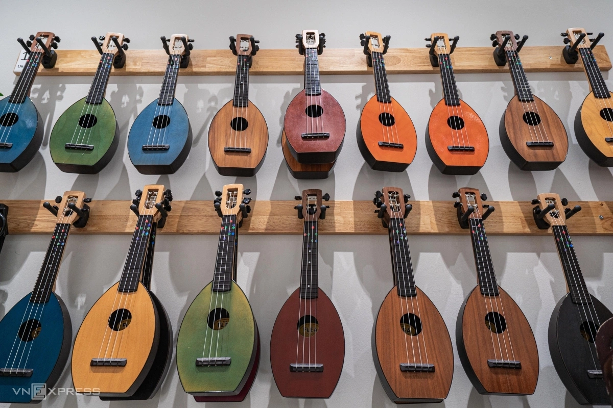 Ở phòng Âm nhạc có nhiều loại nhạc cụ như violin, kèn đồng, saxophone...