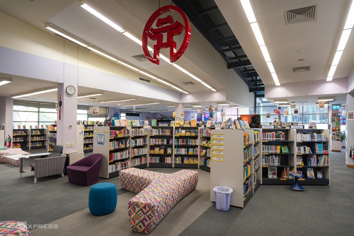 Thư viện rộng gần 1.000 m2, có hơn 50.000 sách, tài liệu in và ấn phẩm điện tử. Học sinh có thể đọc sách hoặc làm bài tập, tham gia các workshop về sách với những tác giả nổi tiếng.
