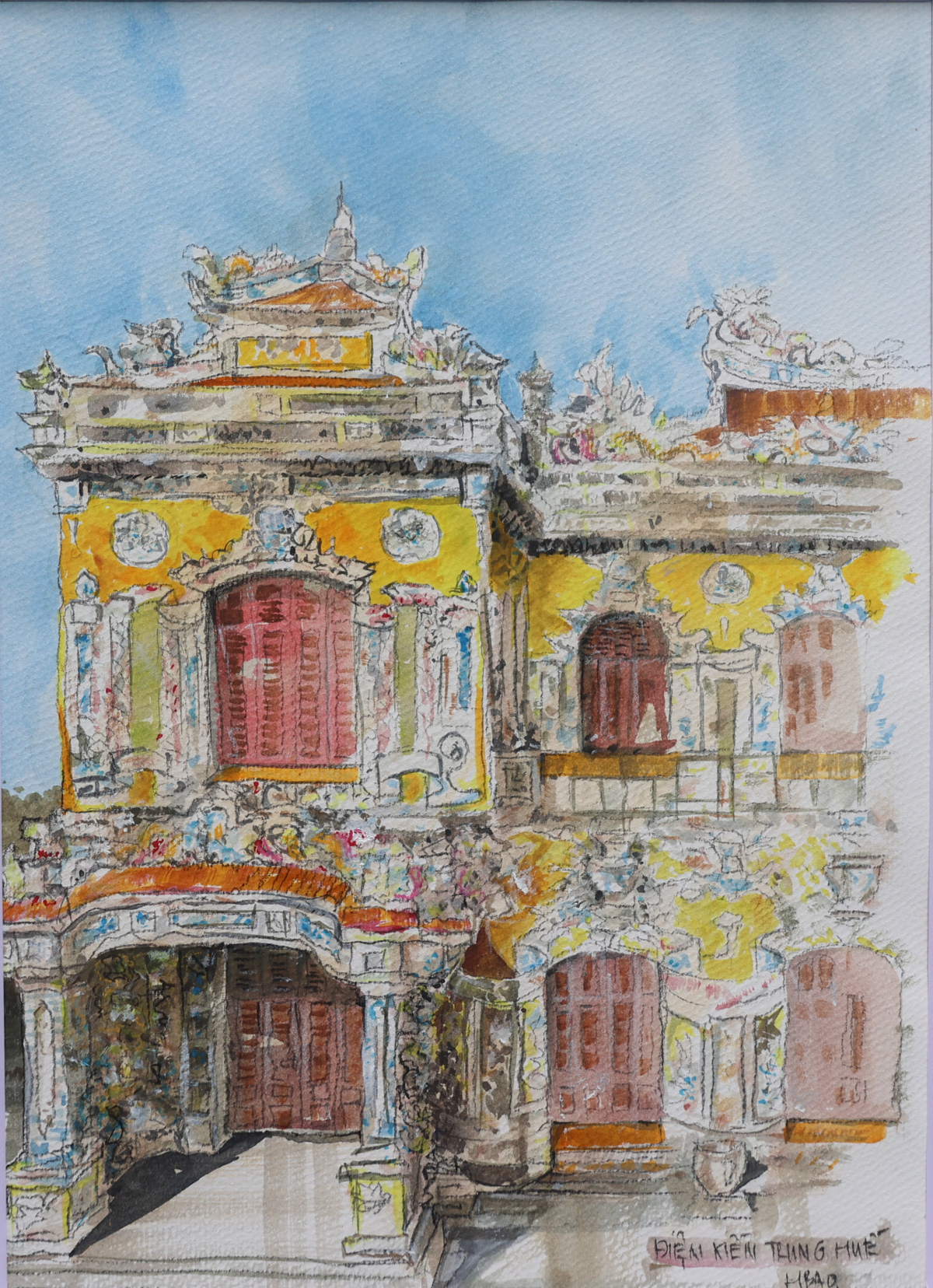 Ảnh sau là tranh vẽ ga Huế - công trình kiến trúc Pháp - của tác giả Bùi Hoàng Bảo.