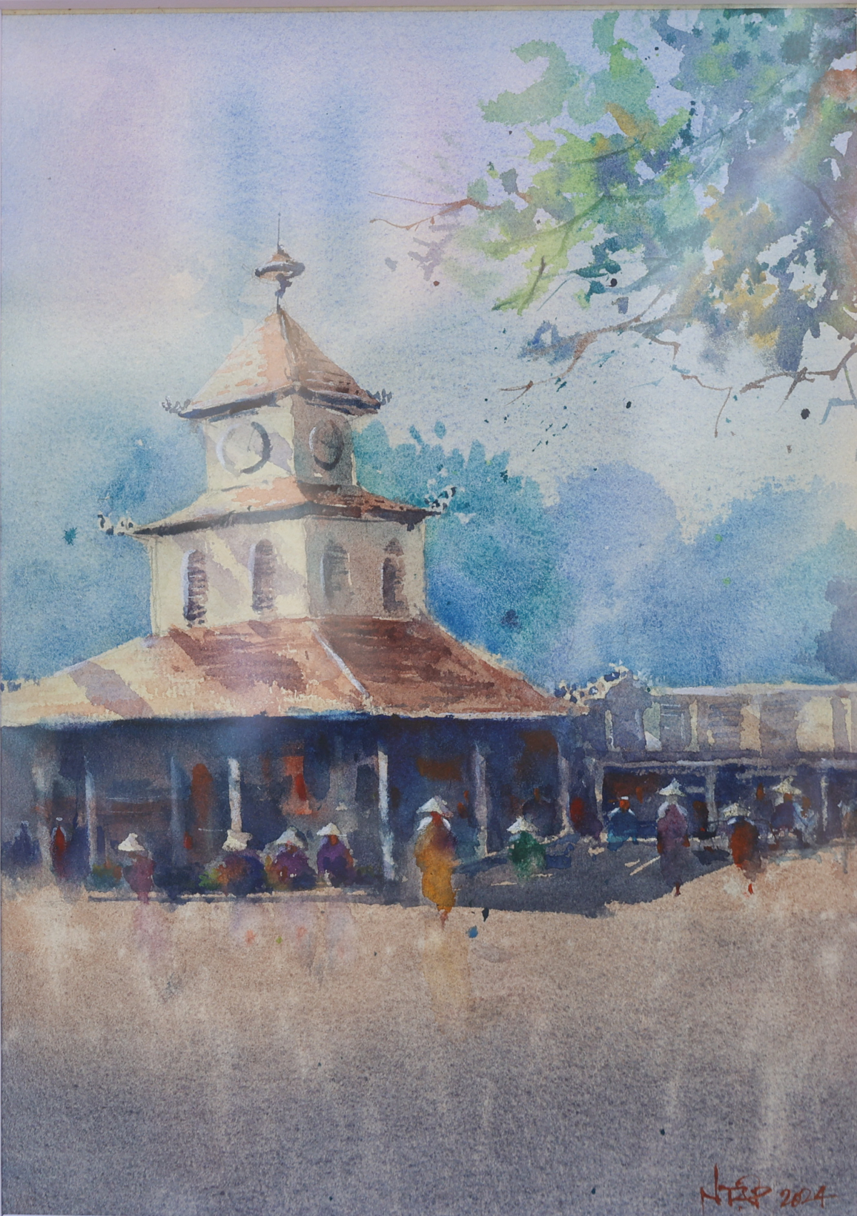 Khung cảnh chợ Đông Ba với chất liệu màu nước, được kiến trúc sư Lam Yên vẽ hai năm trước. Qua các bức tranh, nhóm tác giả muốn lưu giữ những nét kiến trúc lâu đời như một cách tôn vinh di sản và lịch sử.