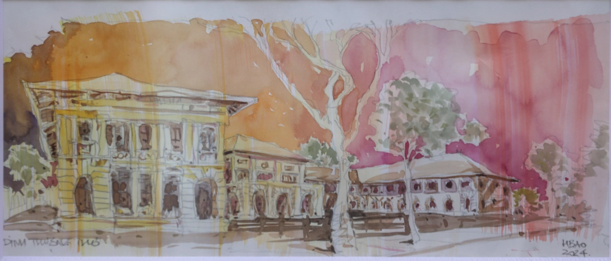 Bức tranh toàn cảnh Dinh Thượng Thơ của Bùi Hoàng Bảo, vẽ năm 2024.