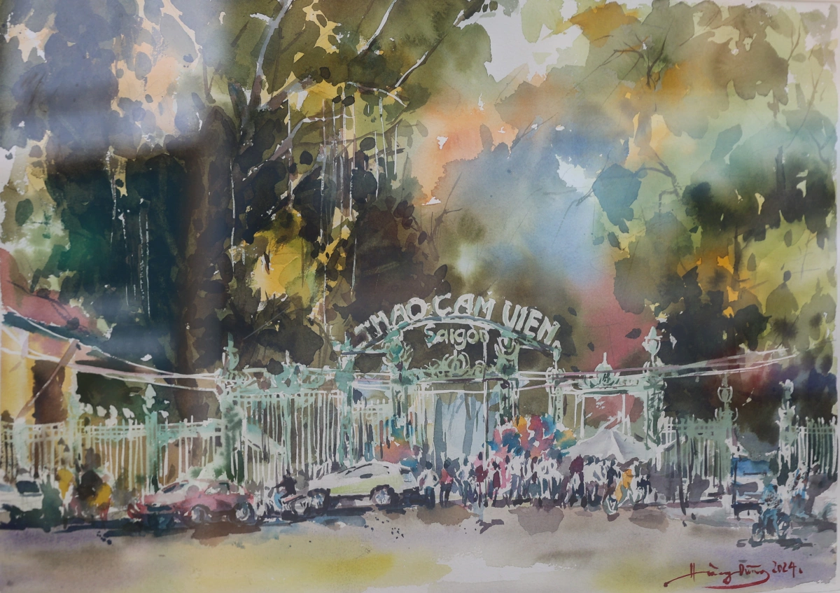 Một góc Lăng Ông Bà Chiểu và Thảo Cầm Viên Sài Gòn trên màu nước của Nguyễn Tấn Nhật và Hoàng Dũng.