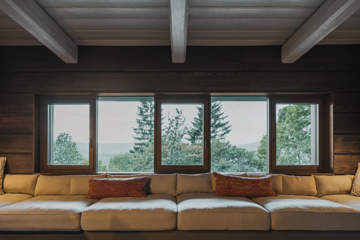 Hệ cửa kính giúp duy trì nhịp điệu kết cấu truyền thống, đồng thời mở tầm nhìn ra cảnh quan xung quanh.