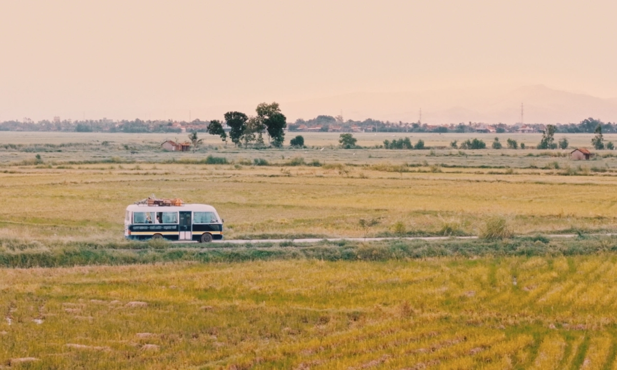 Hóc Răm (Tây Hòa, Đăk Lăk) hiện lên với cánh đồng lúa chín vàng rực, chuyến xe đò rong ruổi ngược xuôi.