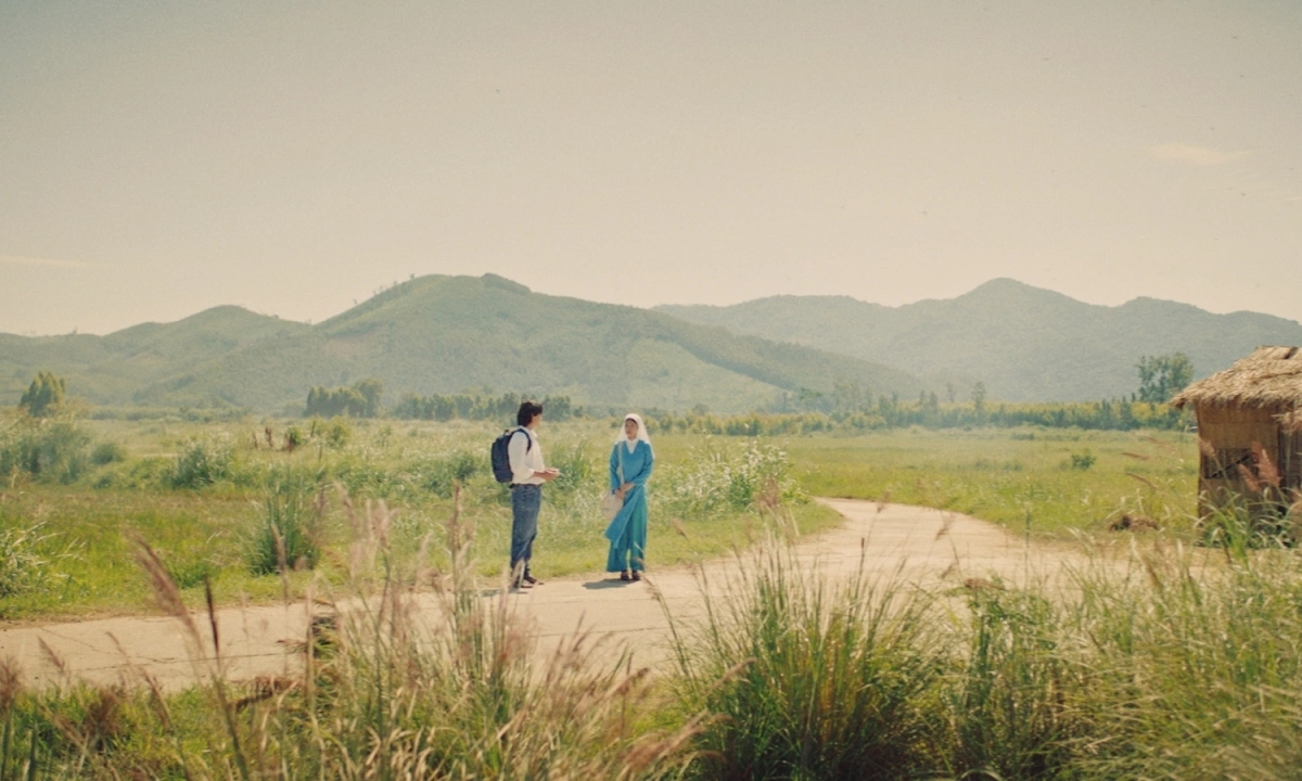 Cảnh đôi nhân vật chia tay nhau ở ngã ba đường cũng được quay tại xứ sở hoa vàng cỏ xanh.