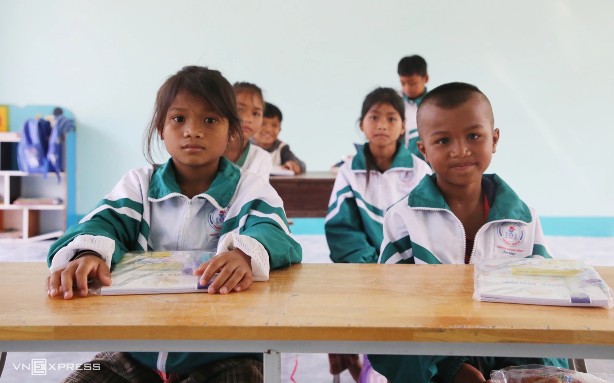 Học sinh điểm trường A Ky trong giờ học ở phòng mới. Lớp học được thiết kế theo quy chuẩn, khang trang, sạch đẹp.