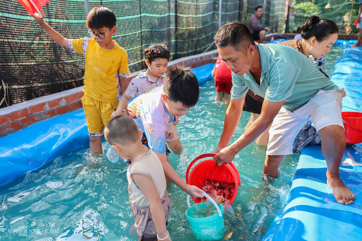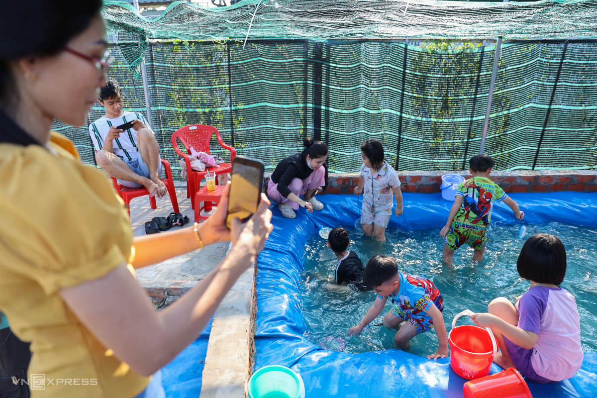 "Thấy vẫn còn khu vực đất trống, tôi thử đào ao, thả cá cho vui, ai ngờ lại đông khách, nhất là trẻ em", chị Tú nói.