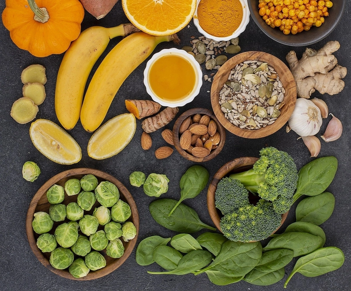 Trái cây và rau xanh chứa nhiều chất dinh dưỡng có thể bảo vệ cơ thể chống lại ung thư. Đây là một phần của chế độ ăn uống hằng ngày vì giàu chất xơ, chất chống oxy hóa cũng như vitamin, khoáng chất, hỗ trợ tăng sức đề kháng, giảm viêm, phòng ngừa ung thư. Một số trái cây nên ưu tiên như dâu tây, nho, việt quất, táo, ổi.