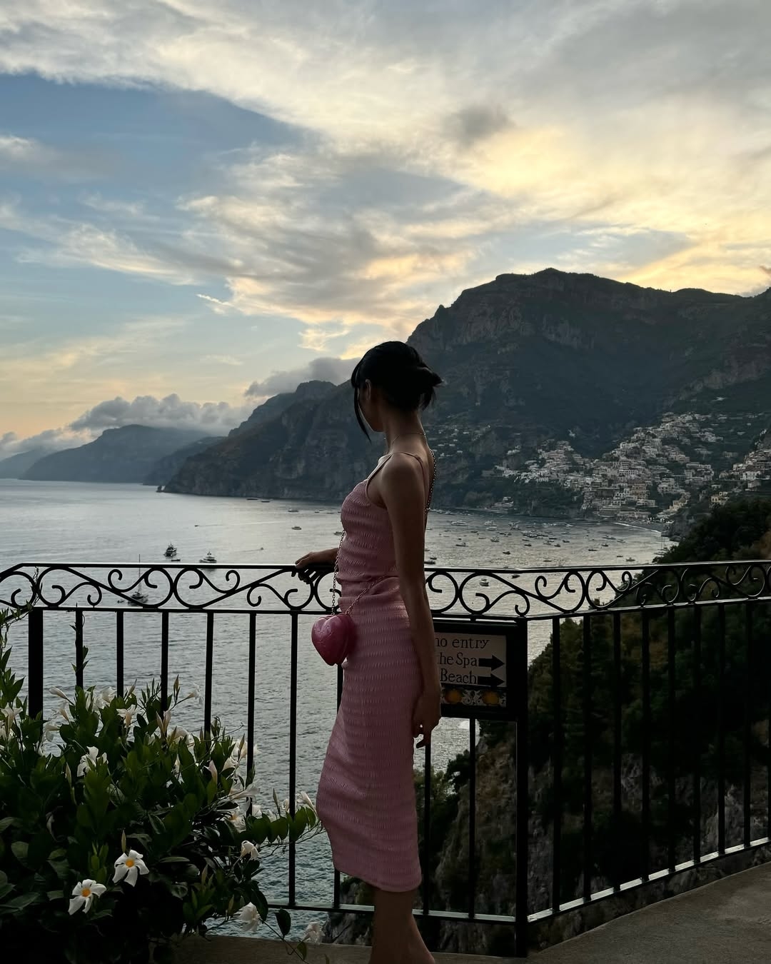 Bên cạnh những bộ váy đan móc, Lisa còn thường mặc váy hai dây dáng rộng, dùng sơ mi làm áo khoác khi đi du lịch châu Âu.