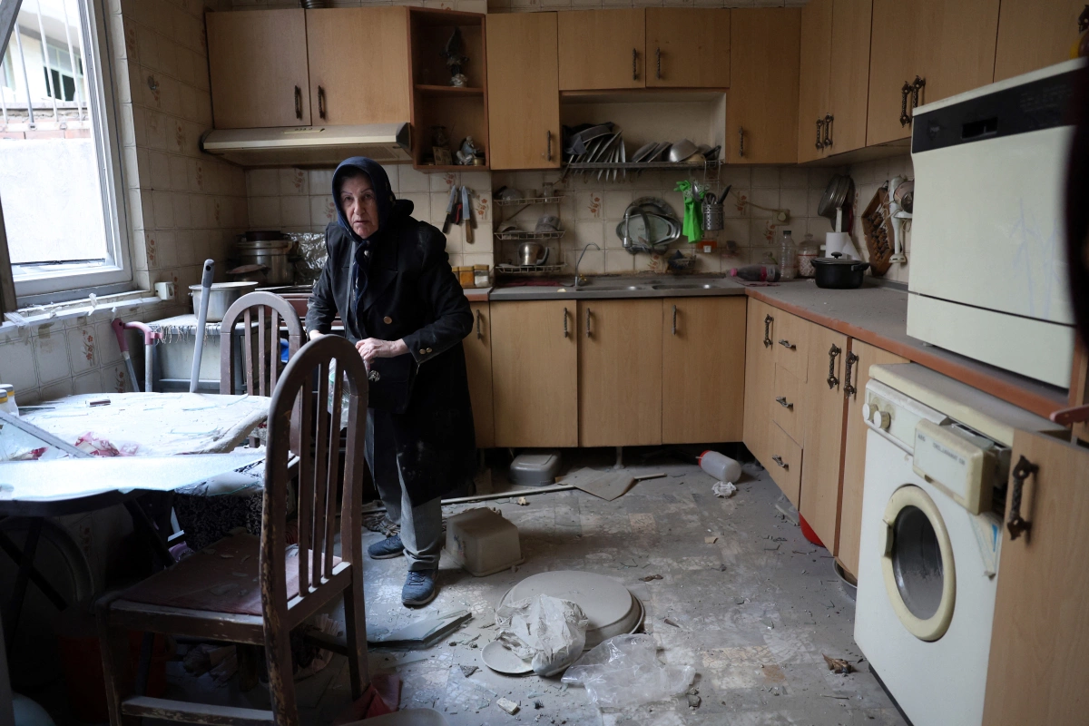 Người phụ nữ dọn dẹp căn hộ bị hư hại tại Tehran.