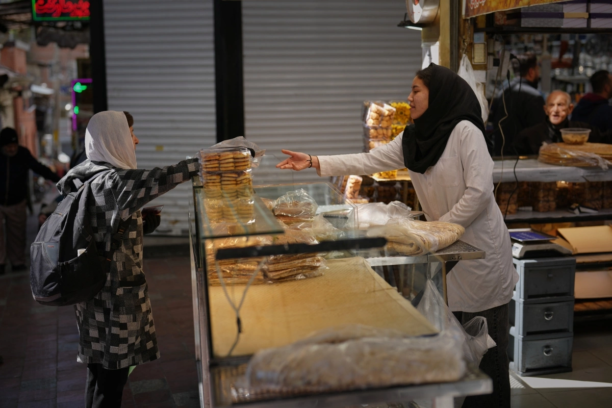 Người phụ nữ mua bánh tại trung tâm Tehran.