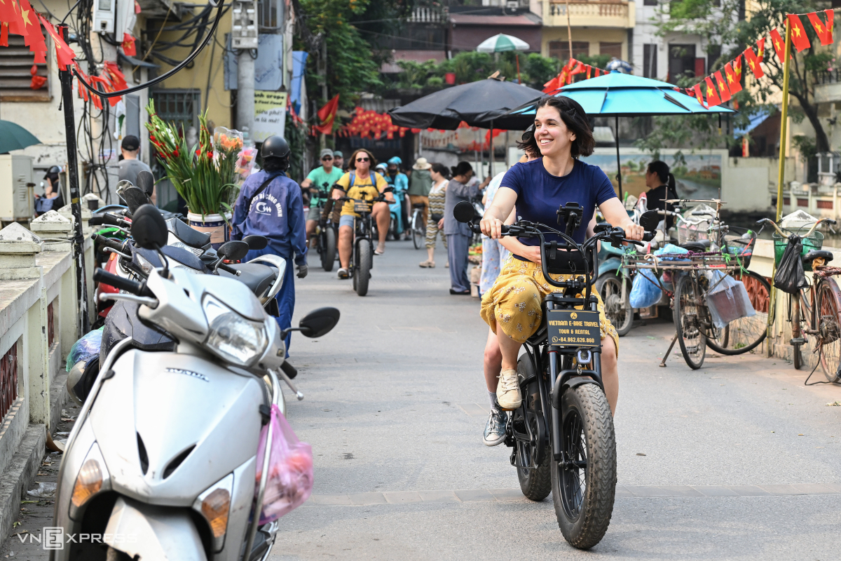 Theo ông Nguyễn Quang Kiên, đại diện đơn vị tổ chức, xe đạp trợ lực giúp khách giữ nhịp độ phù hợp để cảm nhận nhịp sống thủ đô và linh hoạt tiếp cận những khu vực hẹp. Đây cũng là phương tiện giảm phát thải, đáp ứng nhu cầu du lịch có trách nhiệm của du khách hiện nay.