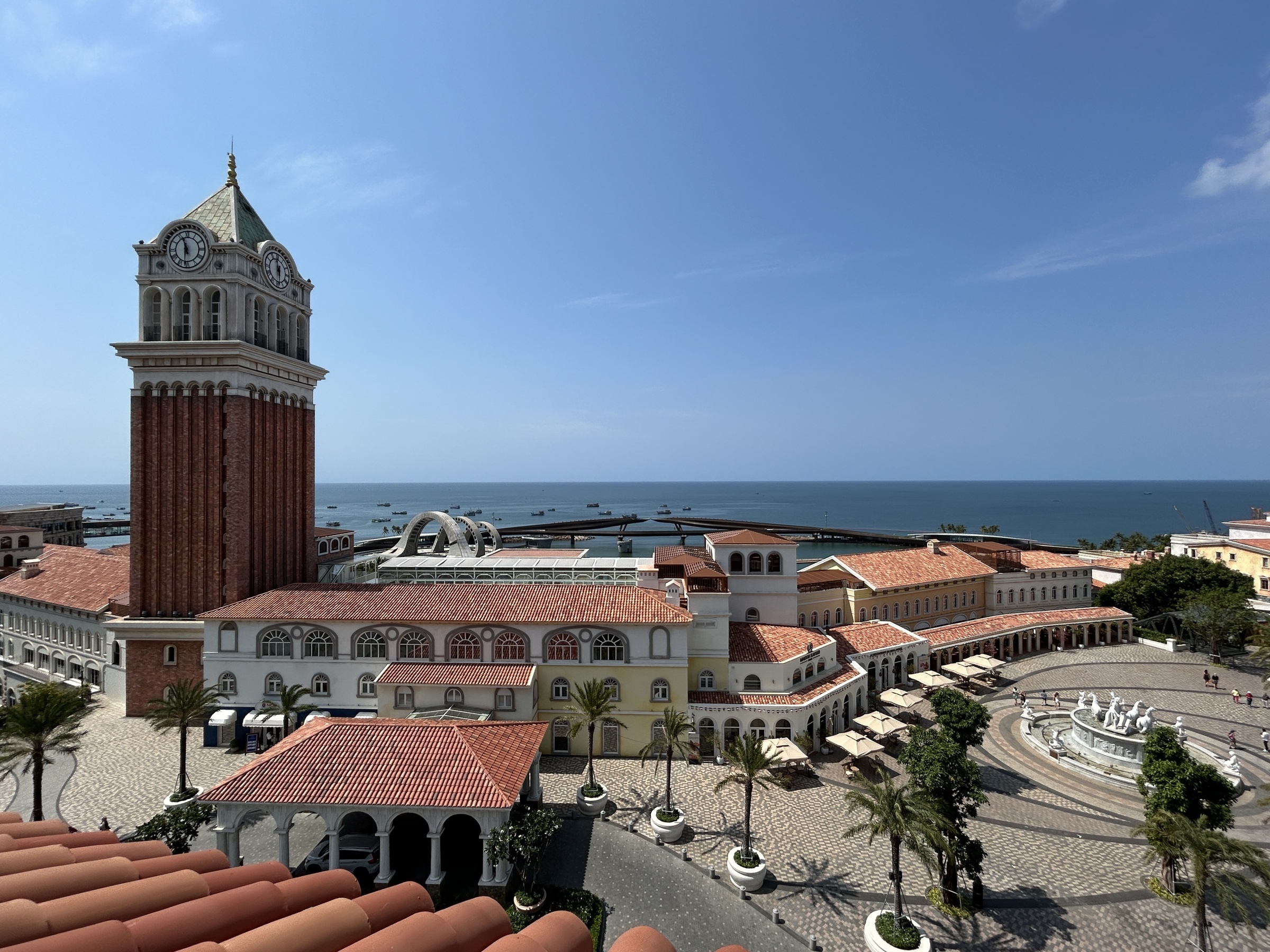 Khu vực Sunset Town tập trung nhiều nhà hàng có tầm nhìn hướng biển, nằm sát các điểm tham quan và sân khấu giải trí. Du khách có thể đi bộ hoặc sử dụng xe điện nội khu để kết nối trực tiếp từ nơi lưu trú đến các nhà hàng, khu vui chơi và điểm xem show diễn.