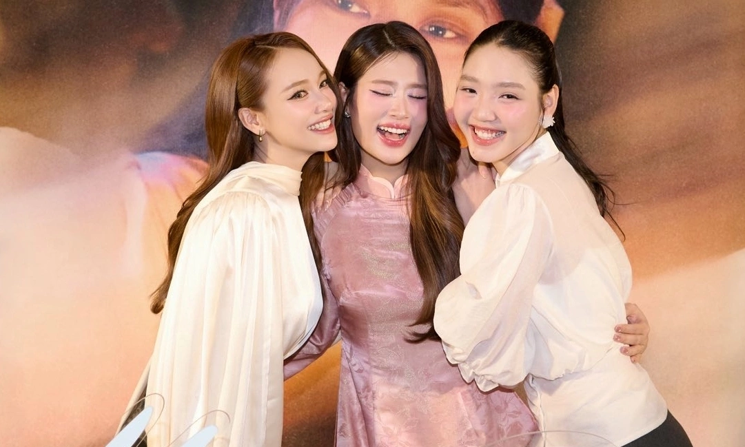 Nhã Phương (trái) tạo dáng bên Hoa hậu Đoàn Thiên Ân (giữa) và diễn viên Đoàn Minh Anh, 18 tuổi.