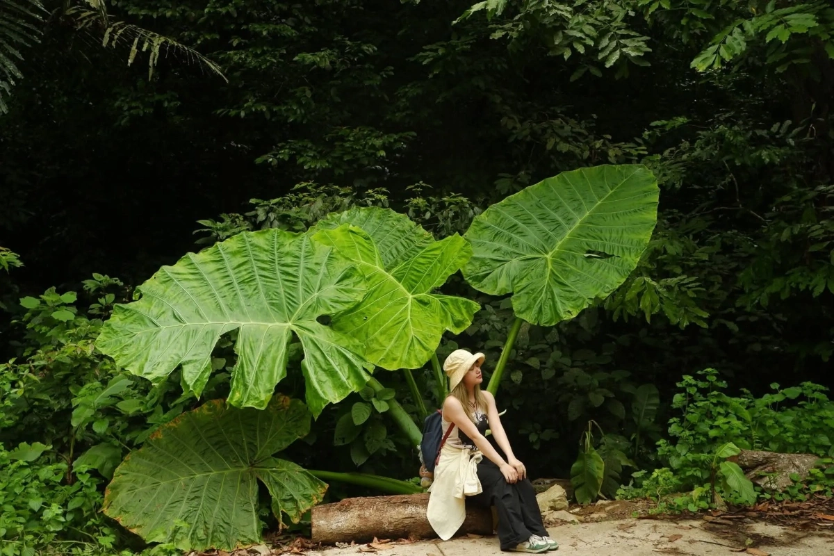 Ngoài "đặc sản" cánh bướm, đại diện Ban quản lý VQG cho biết các gốc ráy khổng lồ cũng trở thành điểm nhấn. Trong điều kiện tự nhiên tại Cúc Phương, loài ráy voi phát triển thân mập mạp theo cụm, cao 3-4 m với phiến lá dài tới 1,5 m. Đơn vị quản lý cũng cảnh báo loài cây này chứa tinh thể calci oxalat trong nhựa, có thể gây kích ứng da nếu tiếp xúc trực tiếp. Ảnh: Linh Vũ