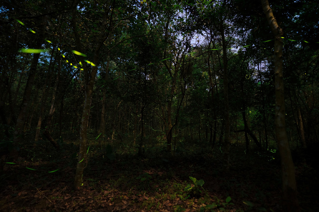 Tháng 4, Cúc Phương còn thu hút du khách bởi mùa đom đóm đêm. Các tour "săn" đom đóm diễn ra trong khung giờ từ 19h đến 20h. Du khách có thể lựa chọn lưu trú tại Khách sạn Cổng Rừng ngay lối vào vườn quốc gia. Giá phòng tại đây dao động 500.000-800.000 đồng. Du khách có thể liên hệ trực tiếp lễ tân của VQG để đặt phòng lưu trú qua đêm. Ảnh: Đăng Foto