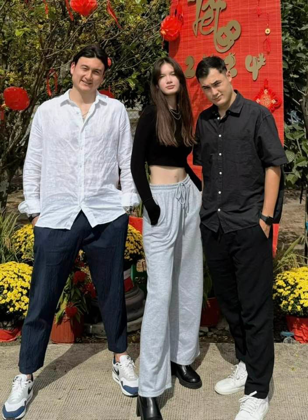 Trong một chuyến du xuân, ba anh em cùng so chiều cao. Văn Lâm (trái) cao 1,88 m, em trai Văn Mạnh cao 1,83 m, Thanh Giang cao khoảng 1,76 m.