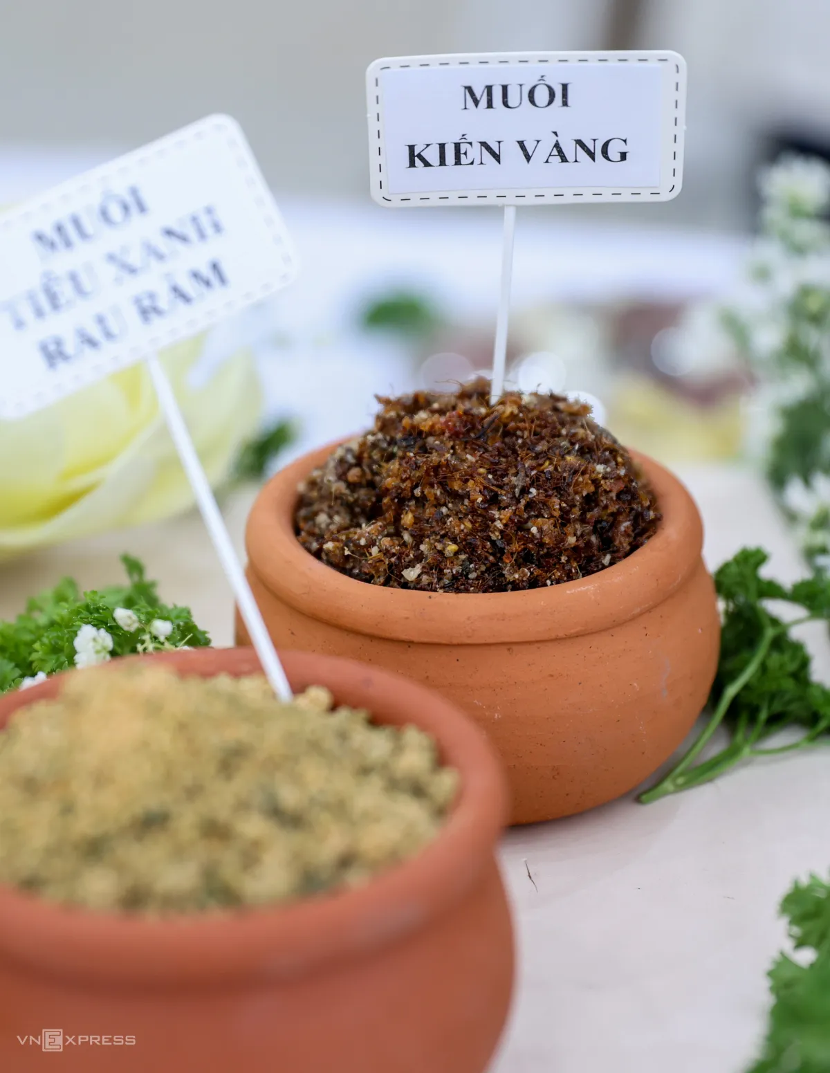 Các món muối cũng được chọn lọc theo vùng miền để tôn lên sự đa dạng ẩm thực. Trong ảnh là hai loại muối cheo của Quảng Bình và kiến vàng của vùng Tây Nguyên.